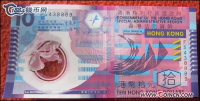 A03===2007年香港塑料纸币10元二张[一张中间豹子号888、一张豹子号111