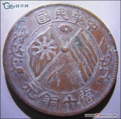H21022民国双旗铜币十文湖南嘉禾当..