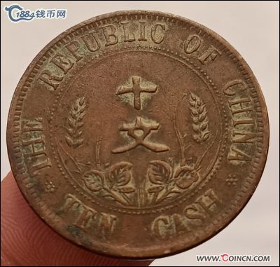 H20965民国双旗铜币十文隶书繁花七..