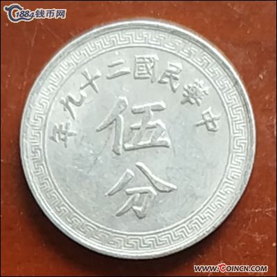 A 原光民国二十九年铝币五分